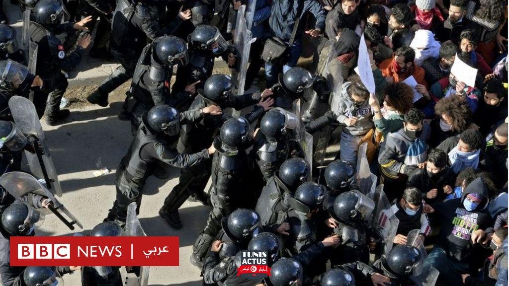 26 يناير/ كانون الثاني 2021صدر الصورة، AFPقطعت الشرطة التونسية الطريق أمام مئات المتظاهرين، الذين كانوا يحاولون الوصول إلى مقر البرلمان في العاصمة تونس، احتجاجا على النخبة السياسية وسلوك الشرطة.واستخدمت شرطة مكافحة الشغب خراطيم المياه في مواجهة المتظاهرين، في محاولة لتفريق أكبر مسيرة منذ بدأت المظاهرات في وقت سابق من هذا الشهر.وثارت موجة غضب بعد اعتقال أكثر من ألف شخص، خلال الاضطرابات الأخيرة في شتى أنحاء البلاد.وتأججت التوترات بسبب البطالة وارتفاع الأسعار، إذ تعاني تونس من أزمة اقتصادية غير مسبوقة. وكان مئات المتظاهرين قد خرجوا في مسيرة من حي التضامن بالعاصمة تونس، حيث اندلعت اشتباكات مع الشرطة عدة ليال هذا الشهر، وانضم إليهم مئات آخرون بالقرب من البرلمان.وأوقفت الشرطة المسيرة بحواجز لمنع المحتجين من الاقتراب من مبنى البرلمان، حيث كان يوجد رئيس الوزراء، هشام المشيشي، الذي كان يحاول الحصول على الموافقة على تغيير وزاري واسع في حكومته.وقال أحد المتظاهرين، ويدعى سالم بن صالح، وهو عاطل عن العمل: “الحكومة التي تستخدم الشرطة فقط لحماية نفسها من الشعب ليس لها شرعية”.وفي وقت لاحق، أغلقت الشرطة أيضا شارع الحبيب بورقيبة الواسع، الذي يوجد فيه مقر وزارة الداخلية، والذي أصبح بمثابة المكان التقليدي للاحتجاجات الحاشدة، وذلك بعد أن حاول المتظاهرون التجمع هناك.واندلعت الاحتجاجات في وقت سابق من هذا الشهر، في الذكرى العاشرة لثورة تونس عام 2011، التي ألهمت “الربيع العربي” ودشنت تحولا ديمقراطيا في البلد.وأدى الشلل السياسي والتدهور الاقتصادي إلى غضب الكثيرين من التونسيين إزاء ثمار الثورة.صدر الصورة، AFPالتعليق على الصورة، زاد الغضب الثلاثاء بعد وفاة شاب “متأثرا بالغاز المسيل للدموع” حسب أسرتهوفي البرلمان، اقترح المشيشي تعديلا واسعا على حكومته، وهي خطوة رفضها الرئيس قيس سعيد يوم الاثنين معتبرا أنها مخالفة للدستور.وعرقل الجمود السياسي في تونس منذ انتخابات عام 2019 الجهود المبذولة لمعالجة المشاكل الاقتصادية المزمنة، مع مطالبة كل من المقرضين الأجانب ونقابة العمال الرئيسية بتنفيذ إصلاحات.وفي العام الماضي، مع انتشار جائحة فيروس كورونا، انكمش الاقتصاد التونسي بأكثر من 8 في المئة، وارتفع العجز المالي فوق 12 في المئة من الناتج المحلي الإجمالي، بينما تضخم الدين العام إلى أكثر من 90 في المئة من الناتج المحلي الإجمالي.وكان الغضب عارما الثلاثاء بسبب وفاة شاب أمس الاثنين، قالت عائلته إنه أصيب بغاز مسيل للدموع.وفي مدينة سبيطلة مسقط رأس الشاب هيكل الراشدي، قال شهود عيان إن المشيعين اشتبكوا في وقت لاحق مع الشرطة الثلاثاء.وبينما توقف النقاش البرلماني حول التعديل الوزاري مؤقتا بعد ظهر الثلاثاء، غادر بعض أعضاء البرلمان المعارضين للانضمام إلى الاحتجاج في الخارج.