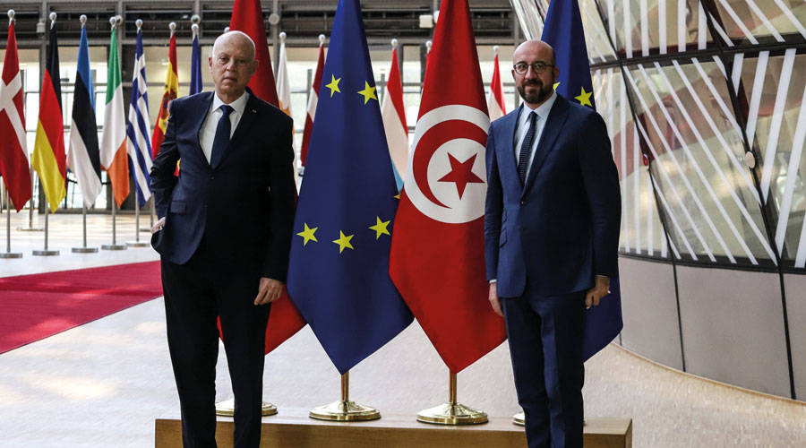جاء ذلك في بیان مشترك للاتحاد الأوروبي وتونس عقب زیارة الرئیس التونسي قیس سعیّد على رأس وفد رفيع المستوى إلى بروكسل،أمس حيث أجرى محادثات مع رئیس المجلس الأوروبي شارل میشیل ورئیسة المفوضیة الأوروبیة أورسولا فون دیر لاین، ورئیس البرلمان الأوروبي دیفید ساسولي.وأضاف البیان: «أن الاجتماع أتاح فرصة لتأكید عمق الروابط التاريخية بین الاتحاد الأوروبي وتونس التي تعود إلى ما یقارب نصف قرن في إطار من الشراكة الاستراتيجية المتطورة باستمرار».