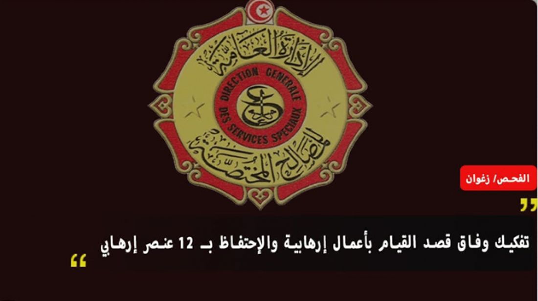 تمكنت وحدات من المصلحة الجهوية لمكافحة الإرهاب ومنطقة الأمن الوطني بزغوان وفرقتي الشرطة العدلية والإرشاد بها، بعد عمليات متابعة ومراقبة للتحركات واللقاءات لعدد من العناصر، من تفكيك وفاق قصد القيام بأعمال إرهابية والإحتفاظ بـ 12 عنصرا إرهابيا.