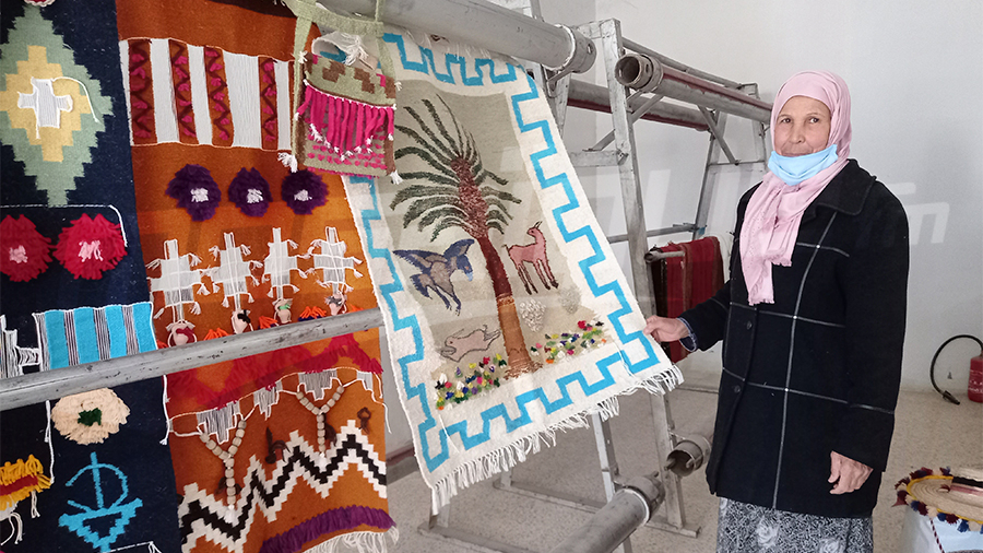 لا تزال “نفطية الحرشانية” الحرفية المتمهرة في صناعة ” المرقوم” أو” الكليم” البوزيدي منذ ما يزيد عن ربع قرن عازمة على مواصلة حرفتها التي مثلت مورد رزقها الشيء الذي جعلها تتشبث بها كثيرا، على حد تعبيرها. وعلى الرغم من الصعوبات التي واجهتها نفطية الحرشانية في العديد من السنوات الماضية بسبب إرتفاع أسعار المواد الاولية وندرتها في بعض الأحيان وقلة اليد العاملة وصعوبة ترويج المنتوج في سنوات كورونا وندرة المعارض، فإنها لم تتوقف عن الإبداع والتجديد في صناعة الكليم البوزيدي حيث استنسخت واستمدت من الموروث الثقافي ومما أسمته بـ “بصمة الكليم البوزيدي ” معلّقات حائطية وستائر وحقائب وملابس تقليدية على غاية من الروعة والجمال على إختلاف وتنوع ألوانها. نفطية الحرشانية تعتبر أن “الكليم البوزيدي” تراث وكنز لا يفنى لذلك فهي تدعو فتيات ونسوة الجهة الى الإنخراط في إحياء هذا الموروث الذي لا يزال على حد تعبيرها واعدا ويكتسي أهمية في تنشيط وتنمية الاقتصاد الوطني. محمد صالح غانمي