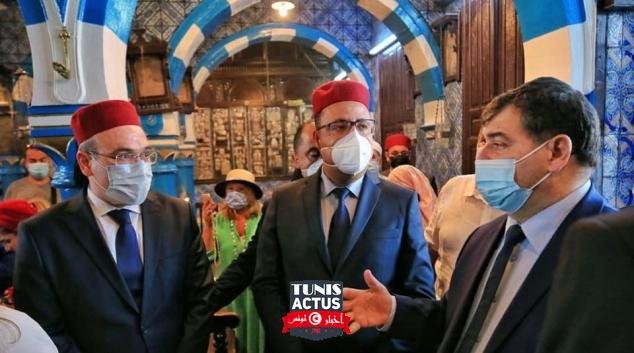 وكان في استقبال رئيس الحكومة والي مدنين الحبيب شواط، ووزير السياحة الأسبق روني الطرابلسي للاطلاع على كيفية تنظيم احتفالات الغريبة لهذه السنة وفق بروتوكول صحي مشدد نظرا للوضع الوبائي الدقيق على الصعيدين العالمي والمحلي.