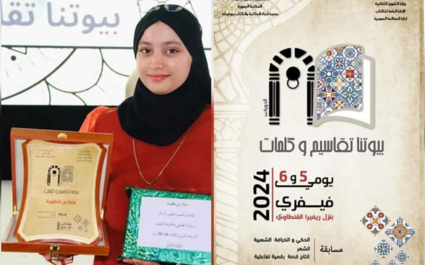 ضمن المسابقة الوطنية “بيوتنا تقاسيم وكلمات” التي إنتظمت أيام 05 و06 فيفري الجاري بأحد نزل مدينة سوسة ، حصدت جهة المهديّة ضمن هذه المسابقة (06) ستّة جوائز وطنيّة بحسب الفئة العمريّة و مجال المسابقة عبر مشاركات من روّاد مكتبات الجهة: