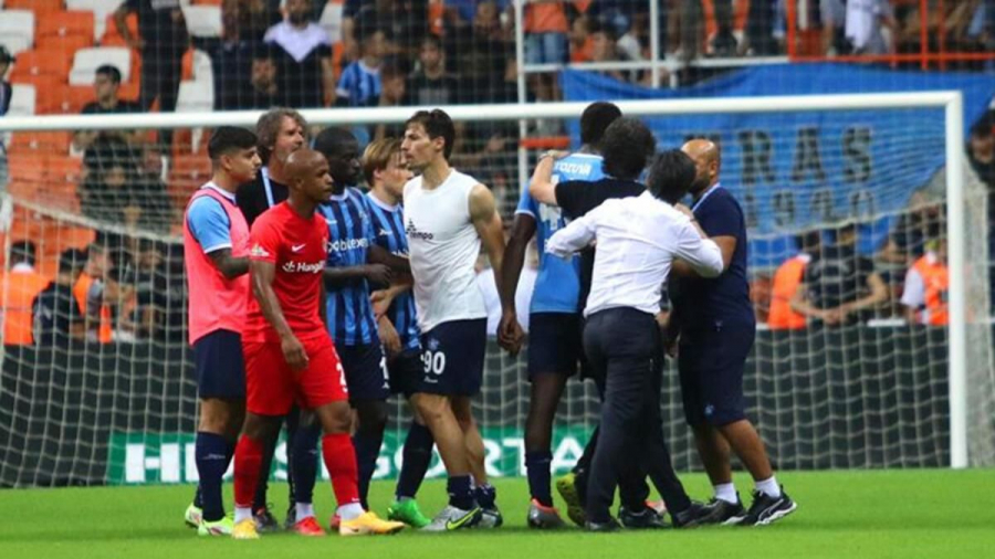 جاء ذلك بعد أن تدخّل لاعبو فريق أضنه دمير سبورت منذ أيام للفصل بين المهاجم الإيطالي ماريو بالوتيلي ومواطنه مدرب الفريق فينشينسو مونتيلا، ولولا وجود اللاعبين لوصل الشجار إلى تضارب بين الرجلين.