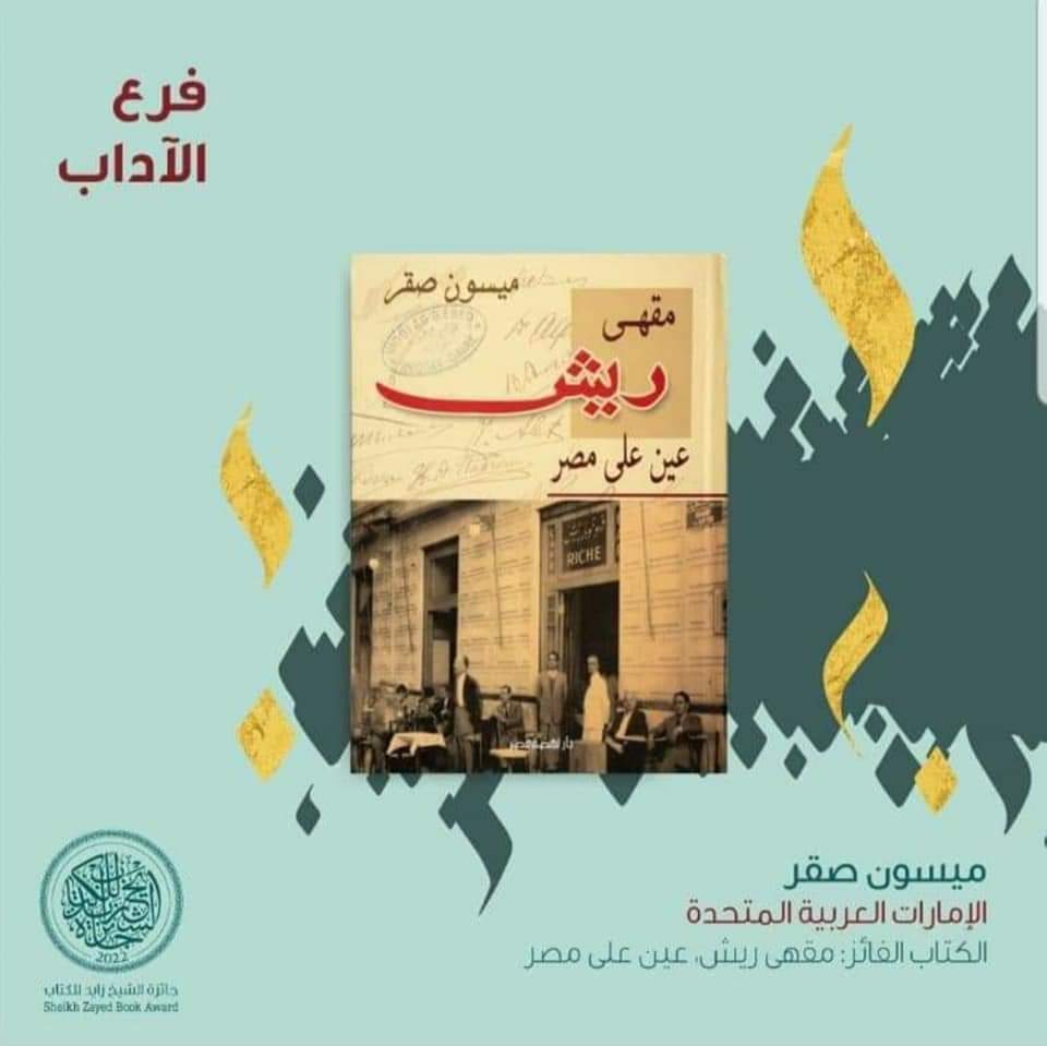 فازت الشاعرة والروائية الإماراتية ميسون صقر، بجائزة الشيخ زايد للكتاب “فرع الآداب”، عن كتابها “مقهى ريش، عين على مصر”، الصادر عن “دار نهضة مصر للنشر” عام 2021، ويتناول الكتاب تاريخ مقهى “ريش” منذ أن اختار مالكه الأول ميشيل بولتيس اليوناني المغامر محب الفن والثقافة هذا المسار، وصولا لعائلة عبد الملاك التي لا تزال تديره من خلال أحفاده كإرث ثقافي يتجاوز الخاص إلى العام.