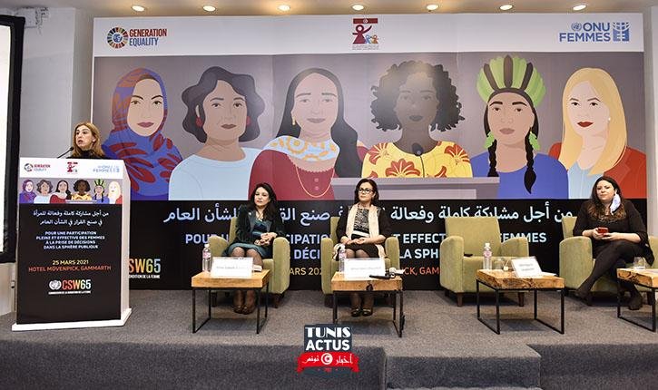 في هذا الإطار ، تنظم هيئة الأمم المتحدة للمرأة في تونس، بالشراكة مع وزارة شؤون المرأة والأسرة وكبار السن، مؤتمرا وطنيا يجمع ممثلين عن الحكومة والهيئات ومنظمات المجتمع المدني والأمم المتحدة والشباب، من بين النشطاء في مجال المساواة بين الجنسين، من أجل تسليط الضوء على التوصيات العالمية للجنة وضع المرأة 65، لإنشاء منصة للتبادل بين الحكومة والهيئات المستقلة ومنظمات المجتمع المدني، وكذلك لبدء التفكير في أفضل السبل لزيادة المشاركة من النساء في المجال العام.
