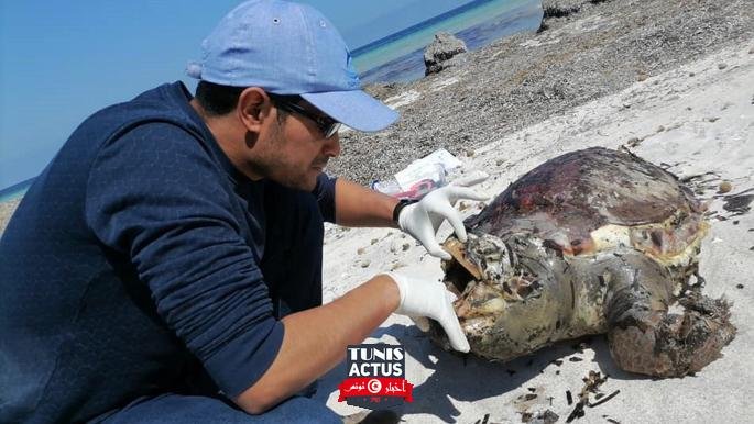 السلاحف باتت مهددّة بسبب التغيّرات المناخية (من جمعية “أزرقنا الكبير”)وبحسب الناشط في الجمعية، هناك ثلاثة أنواع من السلاحف البحرية في تونس، من بينها السلحفاة ضخمة الرأس “كاريتا كاريتا” والسلحفاة الخضراء. يضيف أنّ الجمعية تنفذ أيضاً عدّة حملات للتوعية بوجود أعشاش بيض السلاحف تحت الرمال، وكيفية الحذر من إتلافها أو دهسها من دون العلم بوجودها، لا سيما خلال فصل الصيف، خصوصاً أنّها باتت نادرة الوجود في كلّ أنحاء العالم”. على صعيد آخر، يشير إلى أنّ بعض الشواطئ في تونس كانت من أهم الشواطئ التي تُهاجر إليها السلاحف على غرار خليج قابس، خصوصاً خلال فصل الشتاء لاعتباره من بين الشواطئ الدافئة التي قد تلجأ إليها السلاحف. إلّا أنّ تلوث الشاطئ بأطنان من جبس الفوسفات (مادة صناعية كيميائية) أدّى إلى نفوق العديد من الثروة السمكية، بما فيها السلحفاة البحرية. وهو ما يتم تسجيله سنوياً، لا سيما في فصل الشتاء. وعثر خلال العام الماضي على أعداد كبيرة من السلاحف النافقة في خليج قابس وشاطئ جزيرة جربة. يضيف أنّ “الجمعية تقوم أيضاً بمعاينة السلاحف النافقة لمعرفة أسباب وفاتها، ليتبين أنّ السبب الرئيسي هو التلوث ووجود معدّات صيد في أعماق البحر تعلق فيها السلاحف، بالإضافة إلى البلاستيك الذي يؤدي إلى اختناقها”.