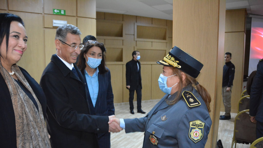 أشرف وزير الدّاخليّة السيّد توفيق شرف الدّين رفقة وزيرة المرأة والأسرة والطفولة وكبار السنّ آمال بلحاج موسى يوم أمس الخميس 9 ديسمبر 2021 بمقرّ المدرسة الوطنيّة لتكوين إطارات الأمن الوطني والشرطة الوطنيّة بصلامبو على اختتام أشغال يوم دراسي حول “القيادة النسائيّة في قطاع الأمن من التكوين الأساسي إلى المُمارسة الناجحة” الذي تمّ تنظيمه في إطار الإحتفال بـ 16 يوما من أجل مناهضة العنف ضدّ المرأة الذي انطلقت فعالياته من 25 نوفمبر إلى غاية يوم 10 ديسمبر من كلّ سنة.