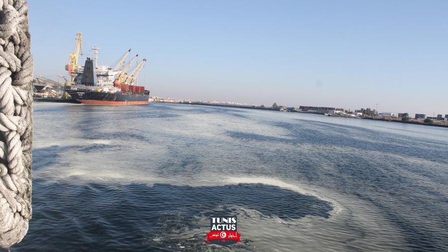 ظهور مادة الكبريت الملوّثة على سطح مياه الميناء
