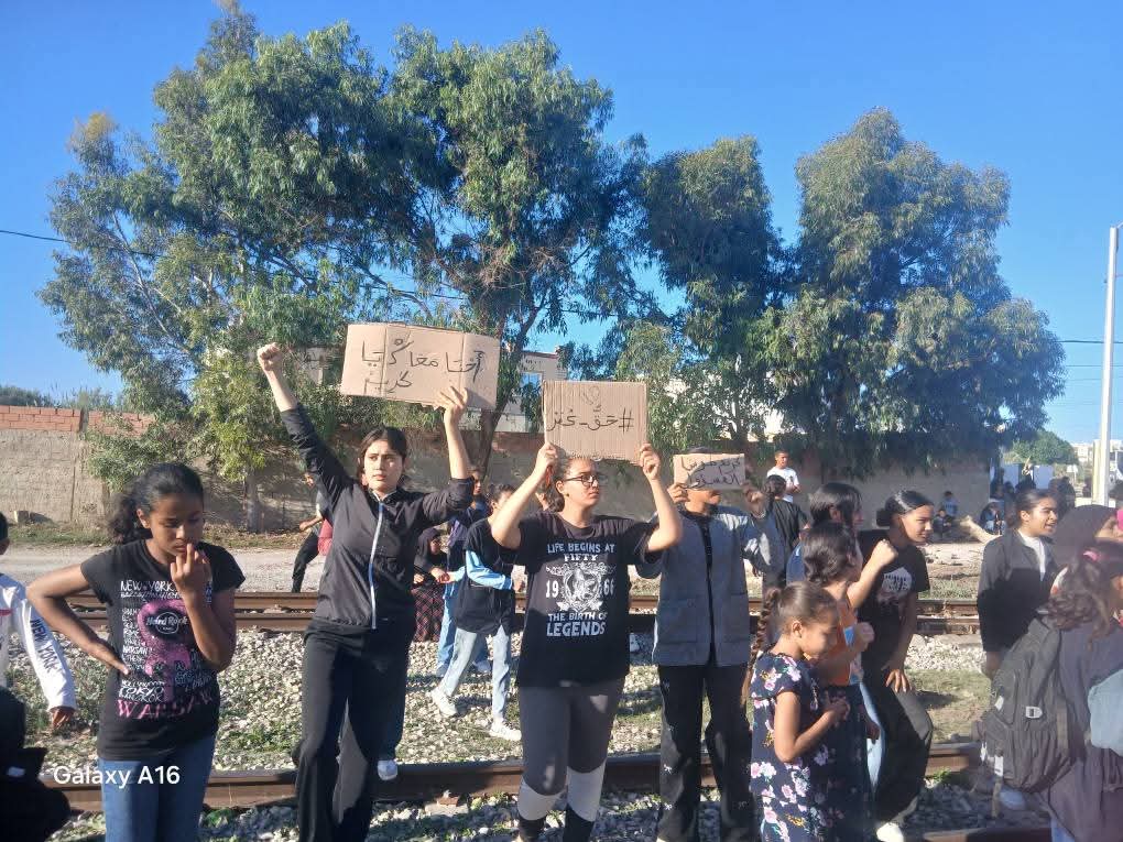 عدد من تلاميذ وأهالي منزل المحطة ينظمون وقفة احتجاجية تضامنية