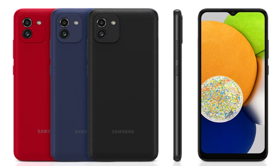 يعد هاتف Galaxy A03 من شركة سامسونج واحدا من أرخص هواتف الشركة، كما يعتبر واحدا من أفضل هواتف الفئة الاقتصادية مع إمكانات جيدة يمكنها تلبية الاحتياجات التكنولوجية الأساسية للمستخدم مع سعر رخيص للغاية. يتوفر هاتف سامسونج Galaxy A03 في السوق المصري بسعر يبدأ من 3 آلاف و 444 جنيها، علما بأن السعر يختلف حسب النسخة وأيضا حسب المتجر . وجاء هاتف سامسونج Galaxy A03 بشاشة مقاومة للمياه والغبار من نوع PLS IPS، قياس 6.5 بوصة، بجودة +HD ،على شكل قطرة ماء للكاميرا الأمامية، وألوان الأسود والأزرق والأحمر، مع نوتش مخصص للكاميرا الأمامية بتصميم Infinity-V على شكل قطرة ماء، ومستشعر للبصمة مثبت على جانب الهاتف. ويقدم هاتف سامسونج Galaxy A03، كاميرا خلفية مزدوجة تضم مستشعر رئيسي بدقة 48 ميجابكسل، مع مستشعر لتصوير العمق 2 ميجابكسل وفلاش LED في الخلف، إلى جانب كاميرا أمامية بدقة 5 ميجابكسل لتصوير السيلفي وإجراء مكالمات الفيديو.ويعمل هاتف سامسونج Galaxy A03 بمعالج معالج ثماني النواة من نوع Unisoc T606 ومعالج رسوميات Mali-G57 MP1 ، مع ذاكرة وصول عشوائي سعة 3 و4 جيجابايت رام، وذاكرة تخزين داخلية سعة 32 أو 64 أو 128 جيجابايت. ويحتوي هاتف سامسونج Galaxy A03، على بطارية كبيرة سعة 5000 مللي أمبير، تدعم الشحن السريع بقوة 15 واط ، يتم شحنها عبر منفذ microUSB، مع تقنية الصوت المحيطي Dolby Atmos.