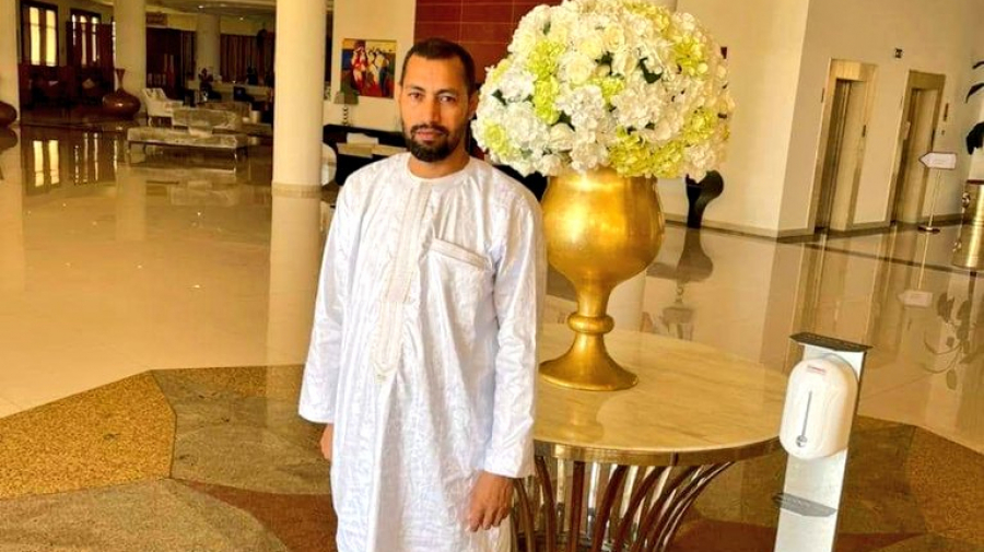 تداول رُوّاد مواقع التواصل الاجتماعي اليوم الجمعة 12 نوفمبر 2021 صورة لمواطن موريتاني يقطن بمدينة لواندا بأنغولا يُدعى الب ولد المعلوم بعد أن أمّ لاعبي المنتخب المصري في مقر إقامتهم خلال صلاة الجمعة.