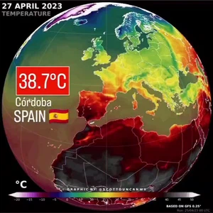 وقد سجل مطار قرطبة في اسبانيا يوم الخميس 27-4-2023 درجات حرارة قياسية تُعد الأعلى حرارة في إسبانيا خلال شهر أبريل حيث وصلت الحرارة القصوى إلى قرابة 38.7 درجة مئوية، متجاوزة بذلك أعلى حرارة مُسجلة خلال شهر آذار السابق بجوالي 5 درجات مئوية.