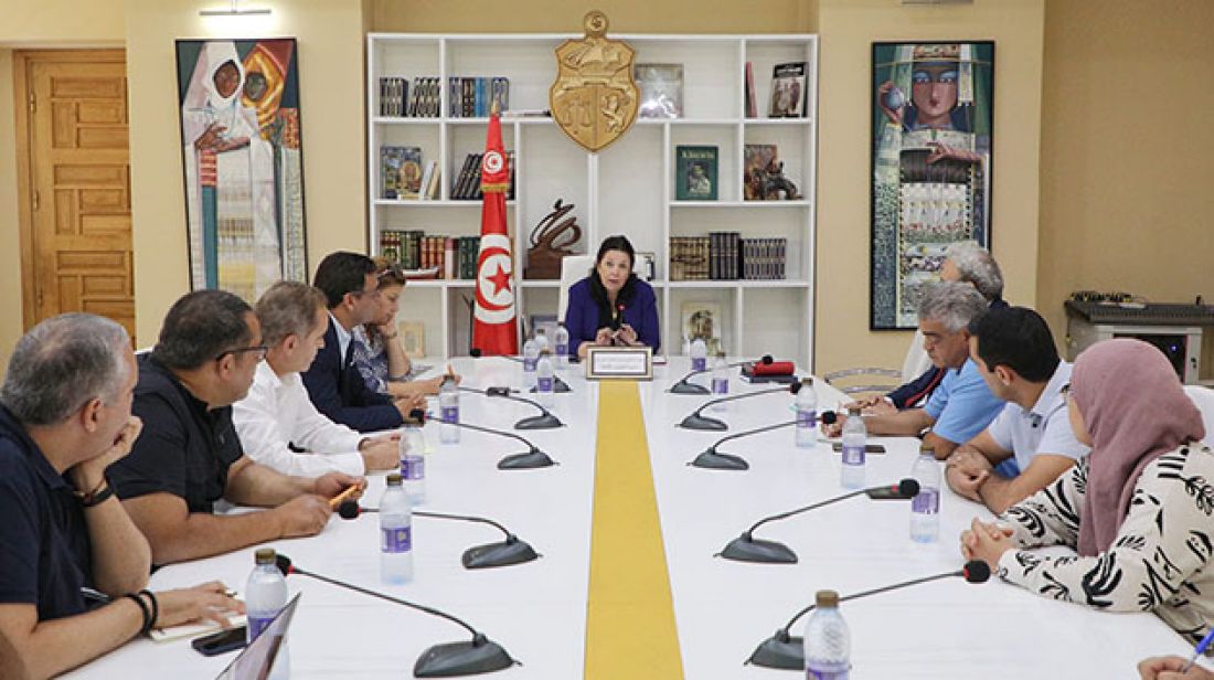 اجتمعت وزيرة الشؤون الثقافية، حياة قطاط القرمازي اليوم الأربعاء 19 جويلية 2023 بالمديرة العامة للمؤسسة الوطنية لتنمية المهرجانات والتظاهرات الثقافية والفنية ومدير عام المركز الثقافي الدولي بالحمامات دار المتوسط للثقافة والفنون وأعضاء هيئتي مهرجاني قرطاج والحمامات الدوليين للنظر في أهم توجهات التظاهرات الثقافية ومراجعة الخيارات الفنية وكذلك الترتيبات التنظيمية والتقنية المتعلقة باحتواء الأحداث الطارئة على المستوى التنفيذي للعروض بالتنسيق مع الوزارات والمصالح المعنية.