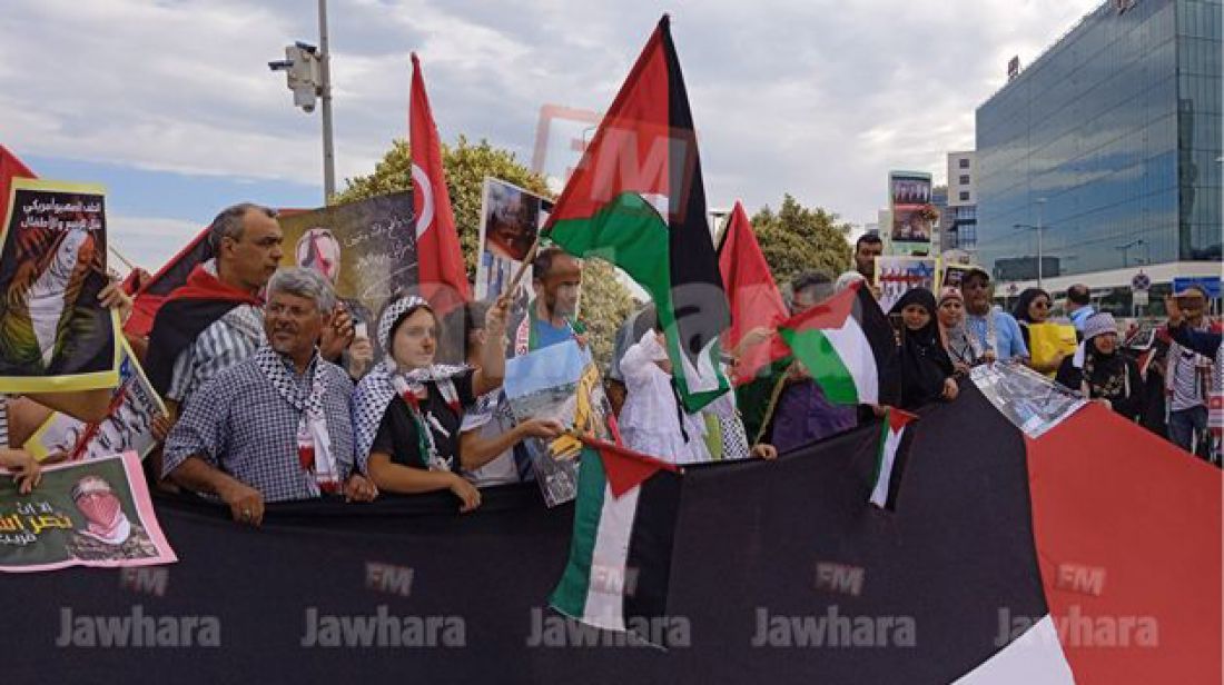 نفذ، صباح اليوم الأحد ، عشرات من ممثلي الشبكة التونسية للتصدي لمنظومة التطبيع وعدد من المواطنين التونسيين للمرة الحادية عشر على التوالي، وقفة احتجاجية أمام سفارة الولايات المتحدة الأمريكية بضفاف البحيرة، للمطالبة بوقف العدوان على الشعب الفلسطيني و على غزة أساسا وبطرد سفير الولايات المتحدة الأمريكية بتونس.
